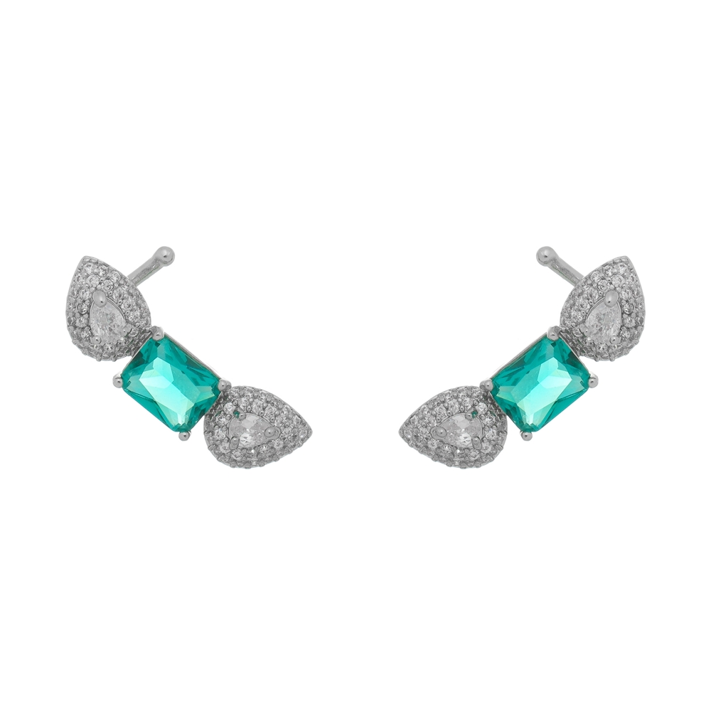 Brinco Mini Earcuff Verde Cravejado Banhado Ródio Branco exclusivo com design feito para você