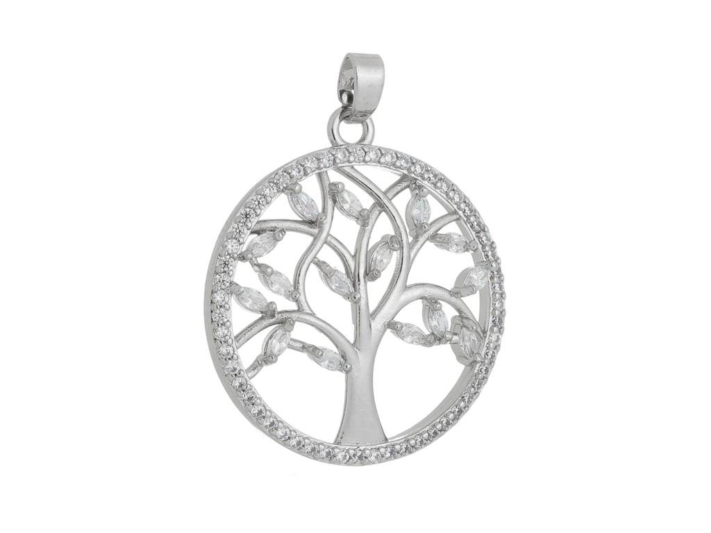 Pingente Feminino Árvore da Vida Cravejado Banhado Ródio Branco exclusivo com design feito para você