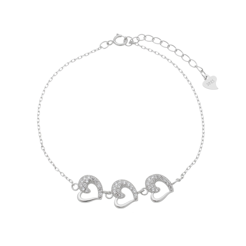Delicada e cheia de significado, a pulseira em prata 925 com três corações cravejados em zircônias é a escolha perfeita para quem ama joias com um toque romântico e atemporal. Seu design elegante combina brilho sutil e leveza, valorizando o pulso com sofisticação no dia a dia ou em ocasiões especiais.